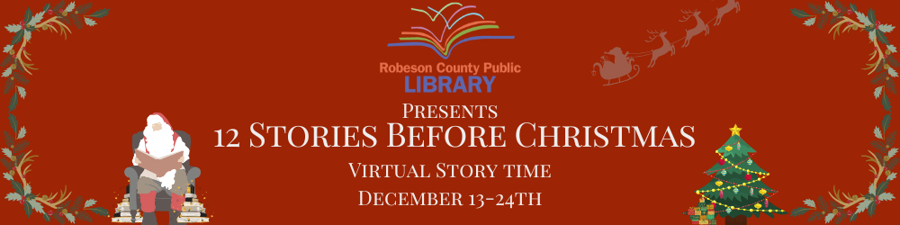 12 Stories Before Christmas Welcome to Robeson County Public Library’s 12 Stories Before Christmas. Thank you for joining us as we present 12 virtual storytimes to help count down till the big day! December 13th: Story 1The Christmas Book FloodBy Emily Kilgore, illustrated by Kitty Moss.Read by Youth Services Librarian Hugh Alderson. December 14th: Story 2The Biggest Little BoyBy Poppy Harlow, illustrated by Ramona Kaulitzki.Read by Outreach Specialist Asia Carter.
